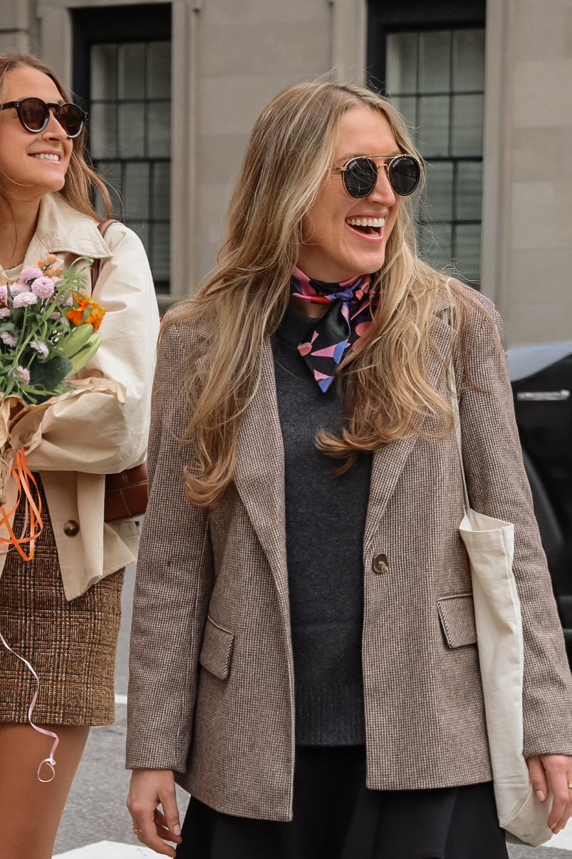 A wearable work of art. The Abstract Blue Scarf is crafted from 100% pure silk with a fluid, luminous drape. Its painterly print adds a pop of color and character — perfect for tying in your hair, wrapping around your neck, or looping onto your bag.